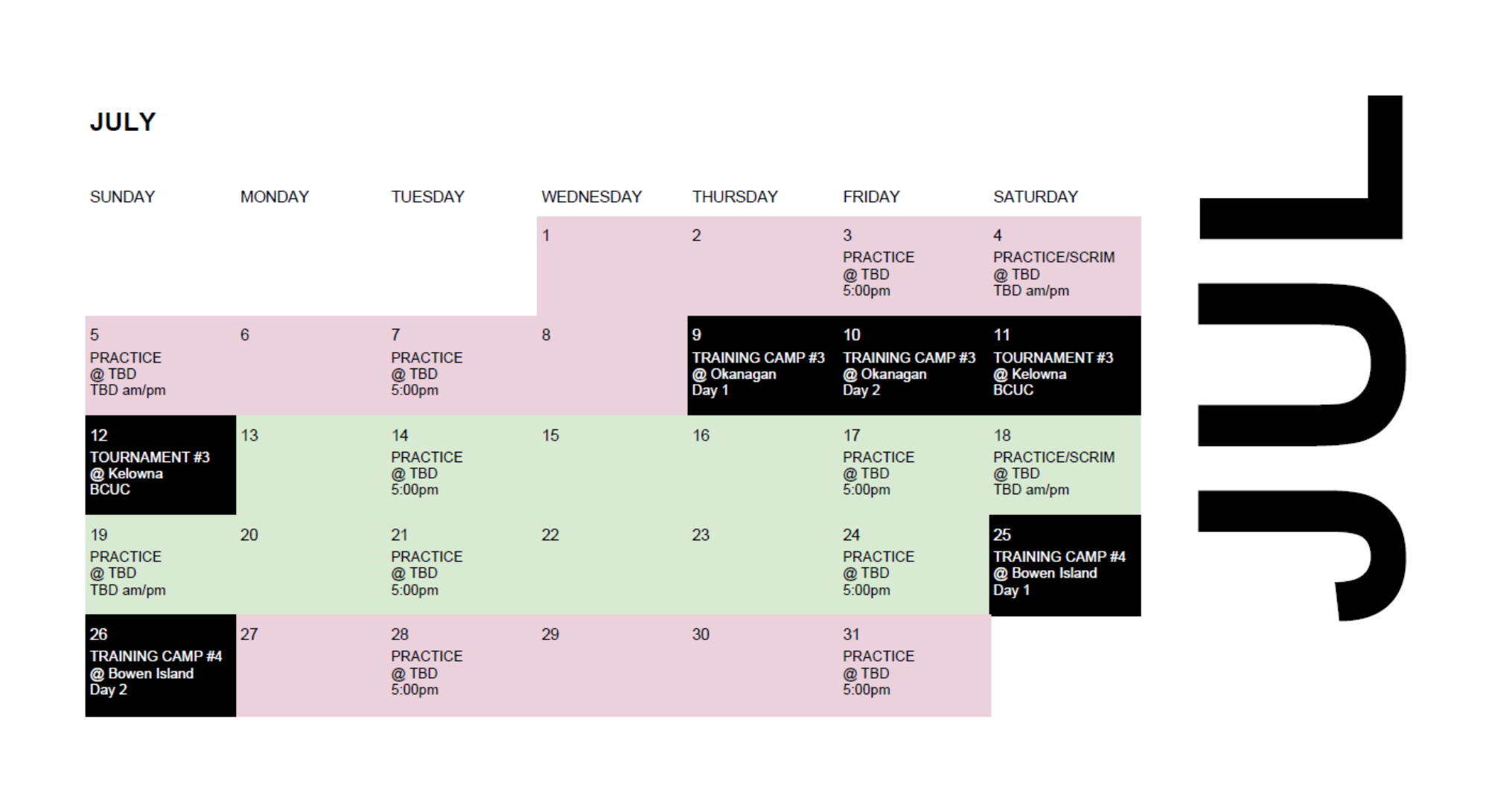 - July 25th & 26th: All teams will look to attend a prospective training camp on Bowen Island