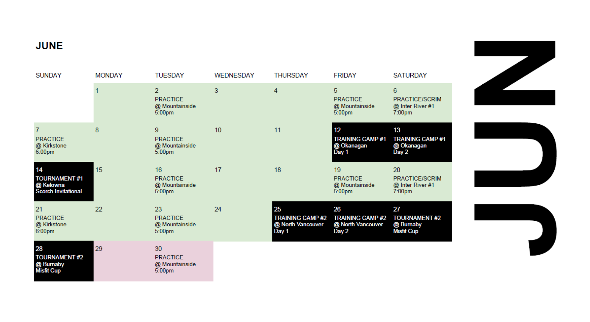 - June 12th – 14th: All teams will look to attend a training camp & potential one-day tournament in the Okanagan